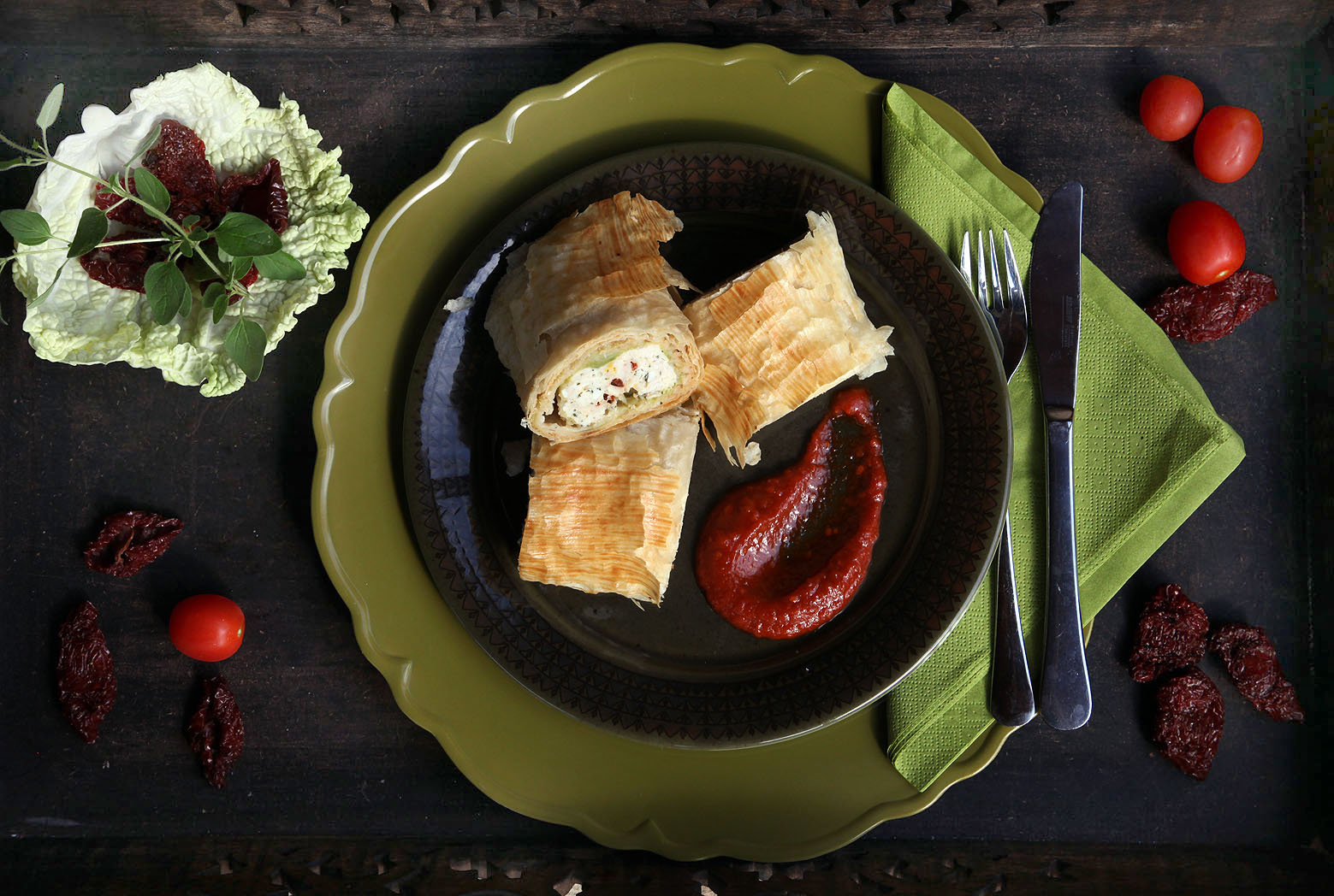 Nem volt kedvem kimenni vásárolgatni. Csak a zöldségeshez kukkantottam be, de ötletem nem volt, hogy mit főzzek. Találomra hoztam egy kelkáposztát. Aztán mikor a főzésre került a sor, rájöttem, nagy baklövést követtem el, mert a fiam annyira utálja a kelkáposztát, hogy főzelék, vagy rakott káposzta szóba sem jöhet. De három csirkemell két napja érlelődött sós fokhagymában, és még a Lidl-ös akciós réteslapból is feküdt egy a hűtőben, így jöhetett a húsbárd, és a kreatívság. Mert nincs darálóm. Ami nem is hiányzik, mert a vagdalt hús, úgy jó, ha tényleg vagdalt. Annyira ragacsos tud lenni a végeredmény, még csak tojás sem kell bele, hogy összeálljon. A házi ketchup adott volt, a szárított paradicsom szintén. Ezt állítottam össze, és mennyei lett.
