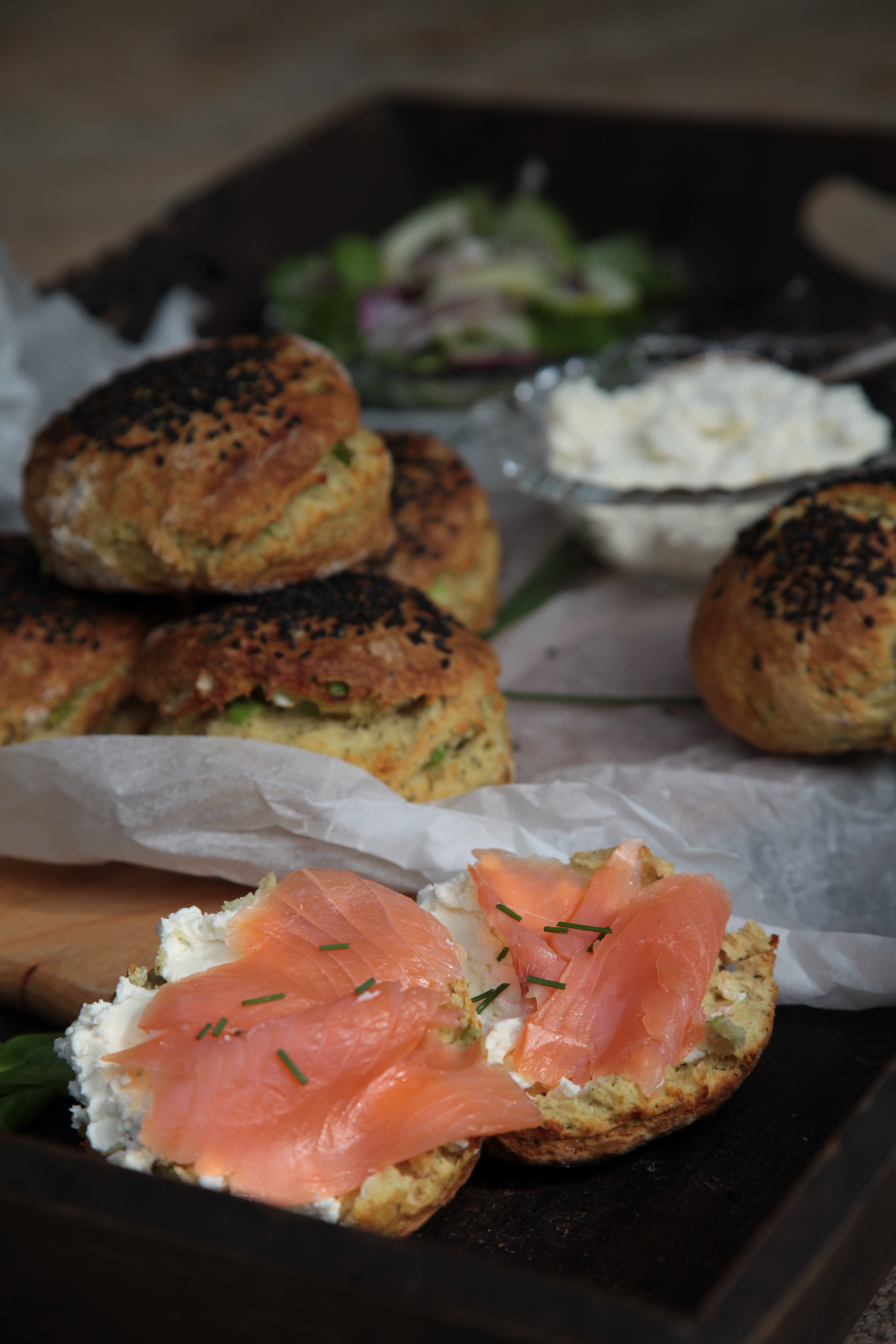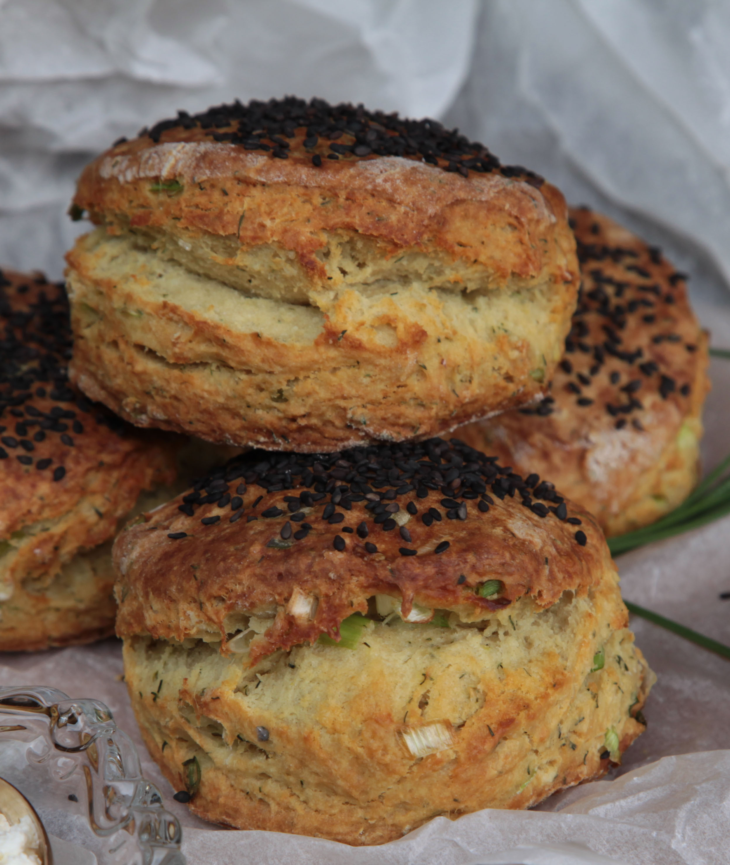 A lisztet tálba öntöm, hozzáadom a sót, szódabikarbónát, az összevágott újhagymát, kaprot. Belereszelem a vajat, majd a meleg tejjel összedolgozom. Lisztezett deszkára borítom, kb 4 cm magas kört formázok belőle és 7 cm átmérőjű pogácsa szaggatóval kiszúrom a köröket. A maradék tésztát újra összegyúrom és abból is szaggatok.