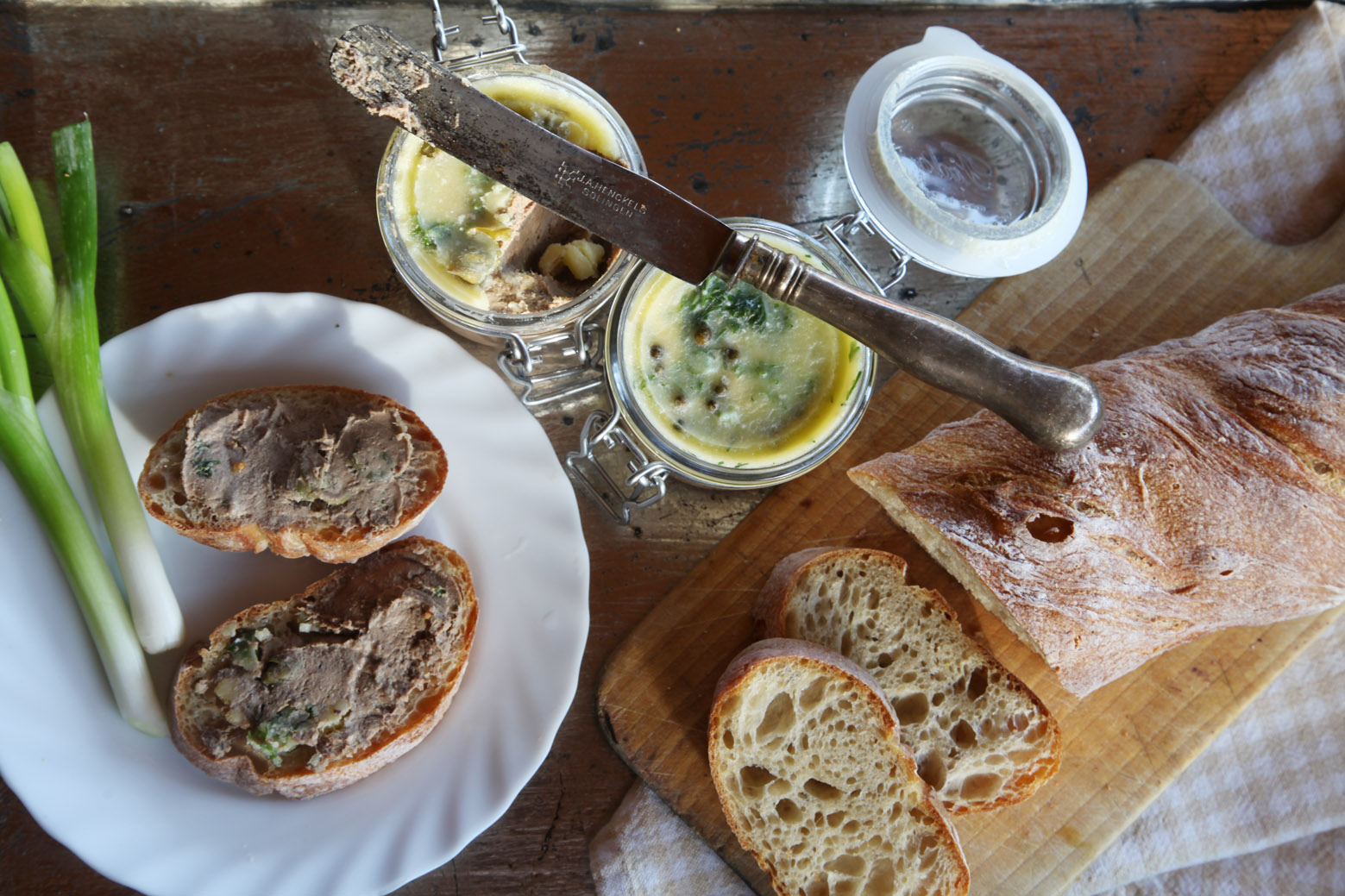 Forrón csatos üvegekbe töltöm, tetejére az olvasztott fűszeres vajból kanalazok, és még tettem rá pár szem kaprit. Mehet a hűtőbe. Napokig eláll(na…) 🙂