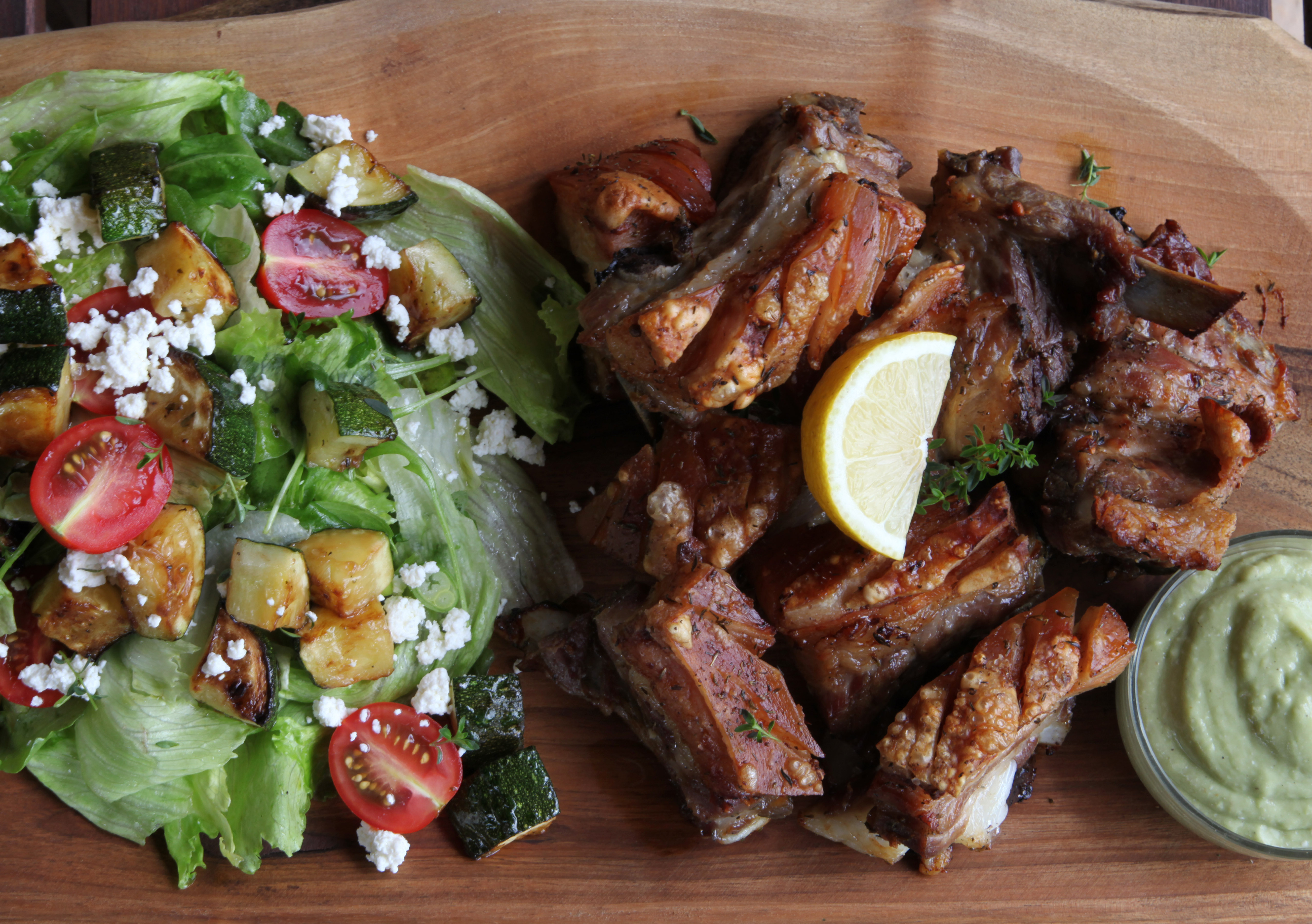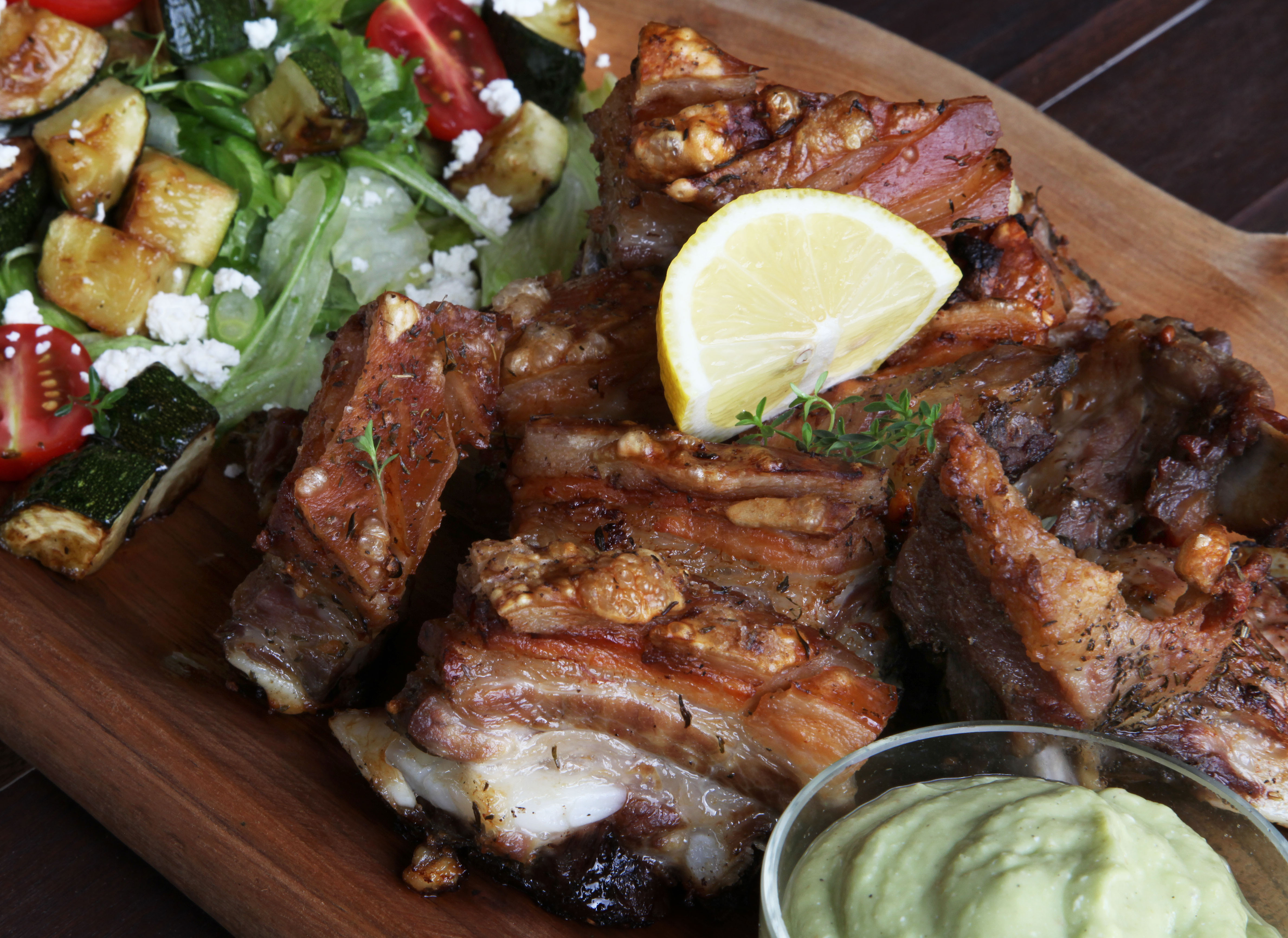 Nem szabad éhesen vásárolni, rég tudom. Olyankor túlvásárolom magam, mert mindenre csorog a nyálam. Aztán mégis, megint beleestem ebbe a hibába. Mert ugye én nem nagyon szoktam venni oldalast. Talán egy évben egyszer. Azt is csak Gábor kedvéért, mikor már elege van az “egészséges” húsokból. A gyerekeim kényesek, nem szeretik a zsíros húsokat. Már akkor is nyavalyognak, ha a marhalábszár pörköltben meglátnak egy kollagénosabb egyedet. Szóval baromi éhes lehettem, mert azonnal lecsaptam a gyönyörű husira, sőt, még a bőrös karajt is meg akartam venni, de Gábor lebeszélt, mert ismer, tudja hogy csak megkívánom, megcsinálom, aztán épphogy megkóstolom… Mindenesetre megdumáltam az eladóval, hogy jövő héten azt fogok venni. 😀