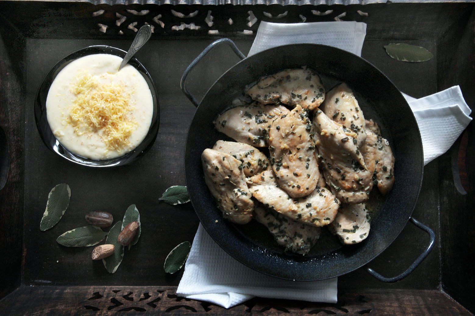 A csirkéket keresztben ketté vágtam, kettő fólia között kiklopfoltam, sóztam, borsoztam.