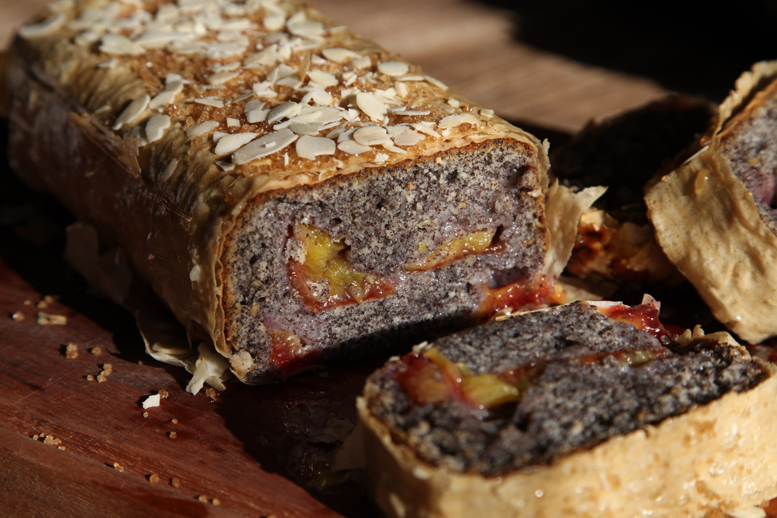 Ki ne is merné a jó öreg bögrés mákost? A legegyszerűbb elronthatatlan süti a világon. Réteslapba tettem, fahéjas szilvával töltöttem, barna cukorral, mandulával megszórtam.