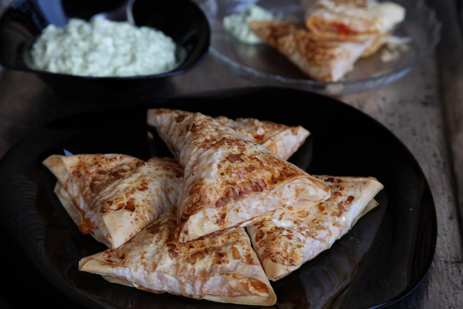 Egyik sarkába betöltöttem a lecsót, és háromszöges hajtogatással felhajtottam. Tetejét a lecsó levével megkentem. 15 perc alatt, 220 fokos sütőben megsütöttem.