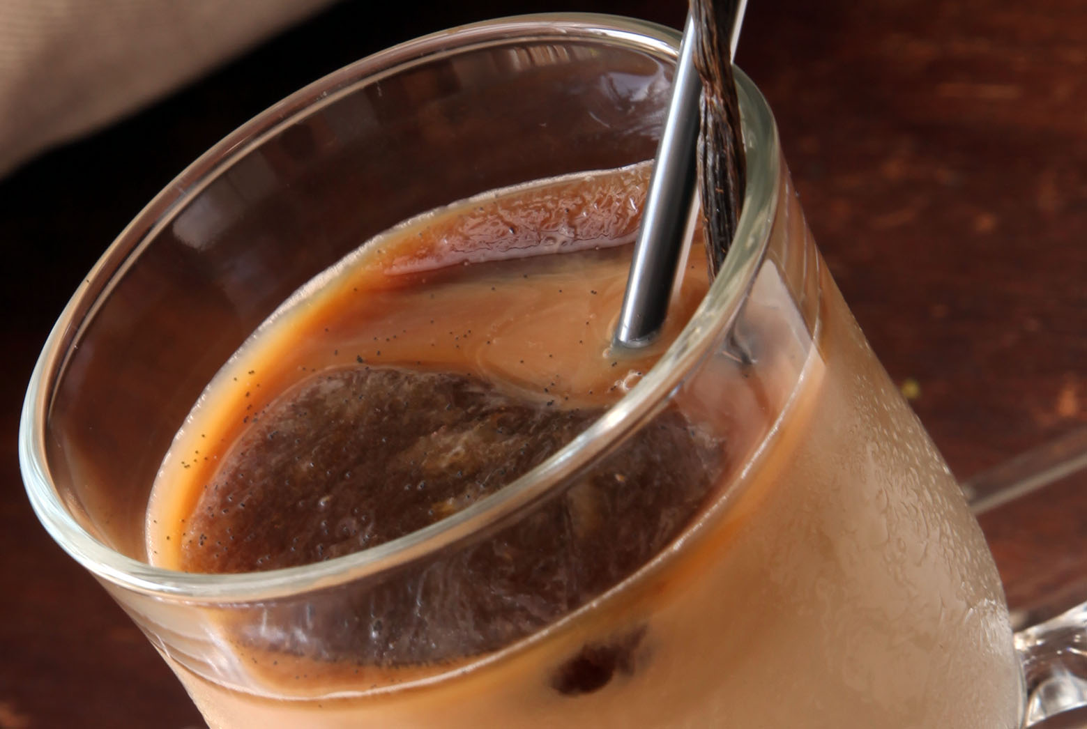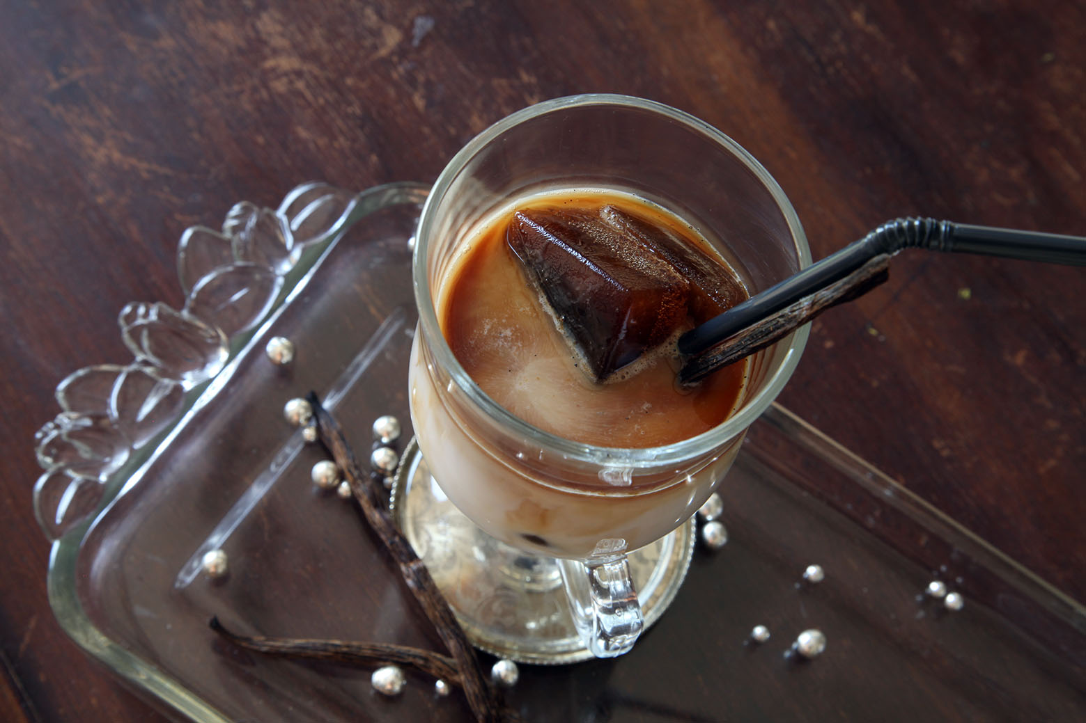 Azt hiszem mindenki egyet ért velem, hogy a nagy melegben késő délután, tökéletes választás egy aromás jegeskávé. Reggel lefőztem egy jó erős feketét, amibe beledobtam egy vanília rudat- aminek előzőleg kikapartam a belsejét-, kavargattam, míg ki nem hűlt. Aztán jégkoca tartóba öntöttem az egészet, és betettem a mélyhűtőbe. Felforraltam fél liter tejet 1 ek cukorral, a vaníliarúd belsejét beletettem, kihűtöttem, és betettem a hűtőbe.